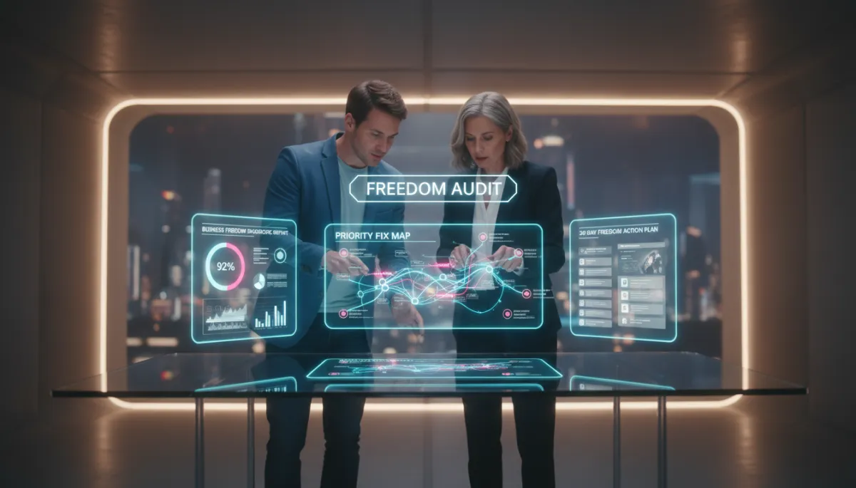 The Freedom Audit is a private strategy session where we map your systems, automations, and workflows to uncover where you’re leaking time, money, and energy.